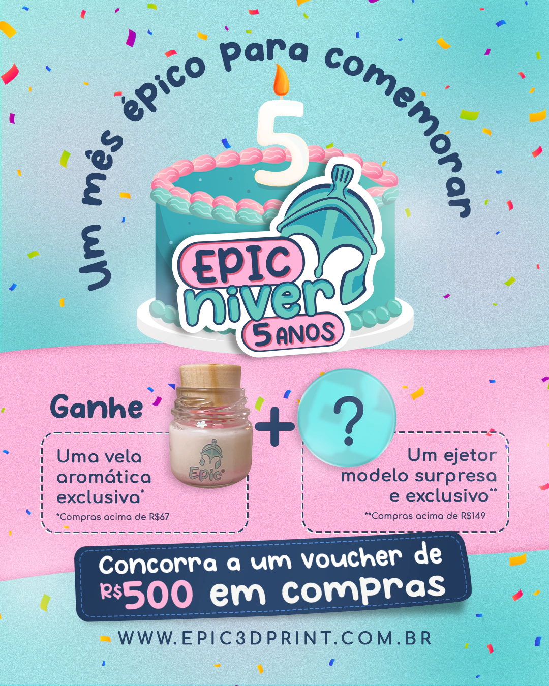 Somos uma família Epic trabalhando para levar até vocês produtos Feito por impressão 3D com qualidade e inovação e muito carinho , para explorar sua imaginação e talento.